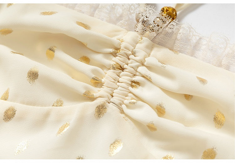 Beige/Black Neck Waist Polka-dot Vintage Halter Lace Patches