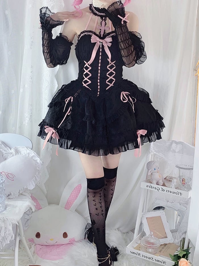 Black and White Old School Lolita Fashion Dress Bowknot Lolita JSK Set