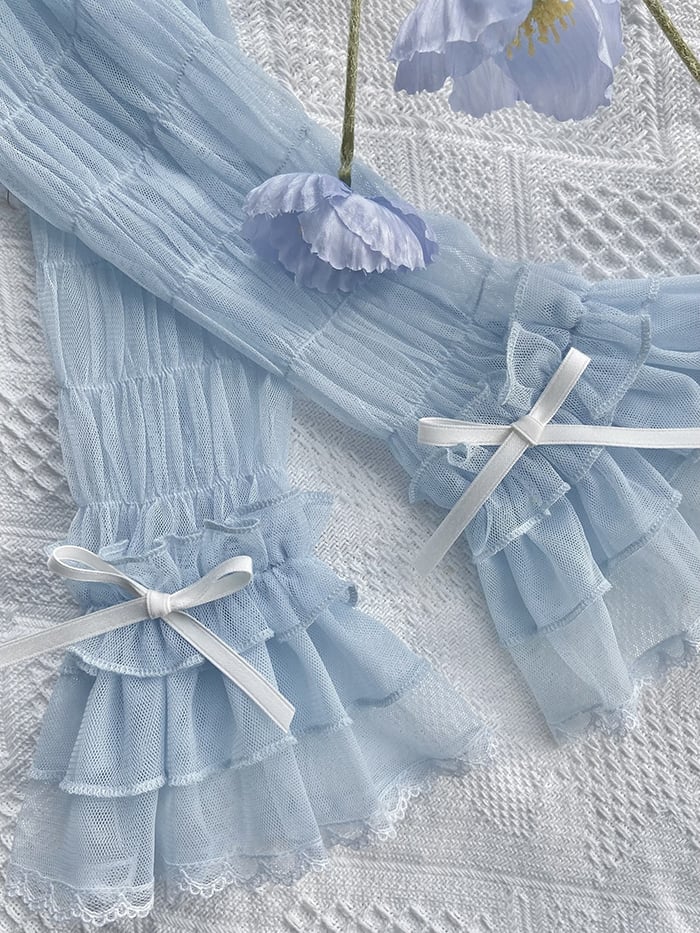 Blue and White Old School Lolita Fashion Dress Bowknot Detais JSK Set