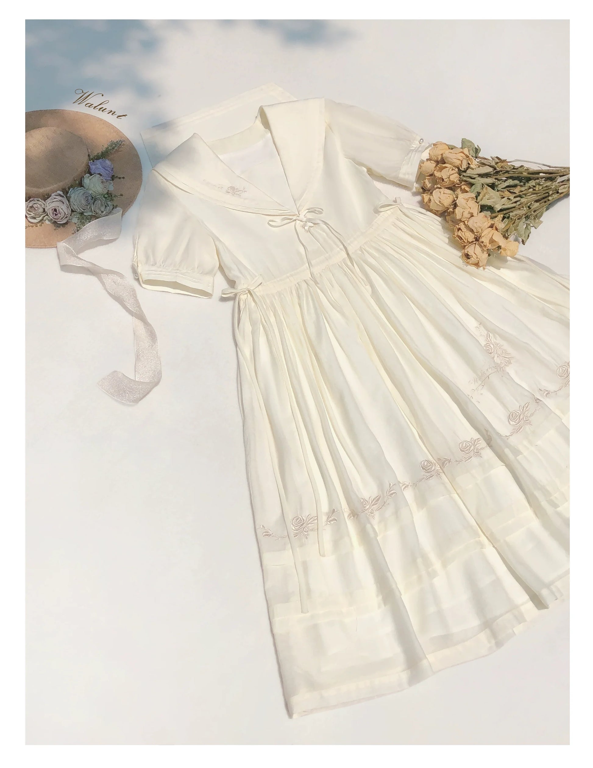 Belt Dress Rose + Skirt Over Tulle Sailor Color + Natural Fairy Collar Embroidery