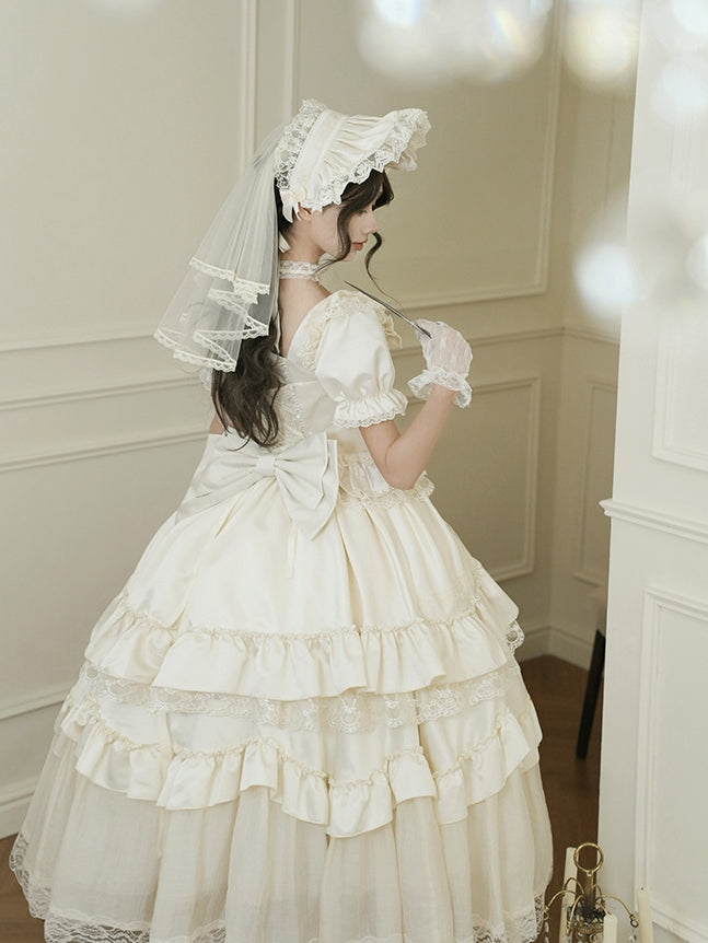 Black and White Old School Lolita Fashion Dress Bowknot Lolita JSK Set