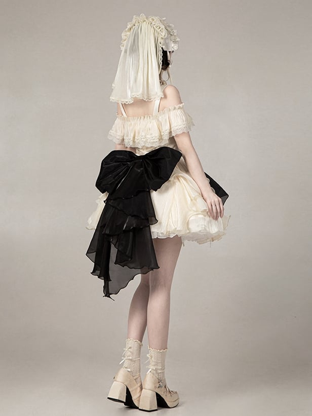 Black and White Old School Lolita Fashion Dress Bowknot Lolita JSK Set