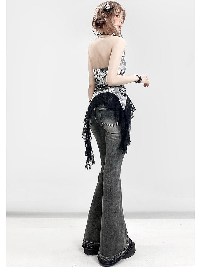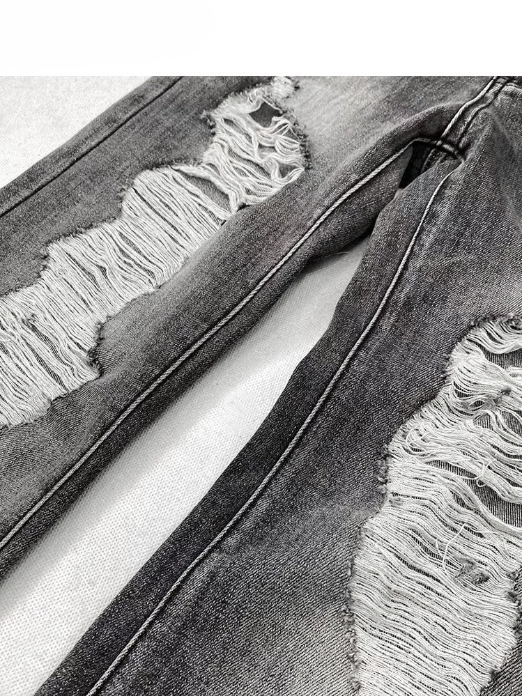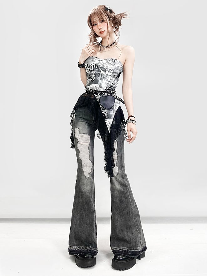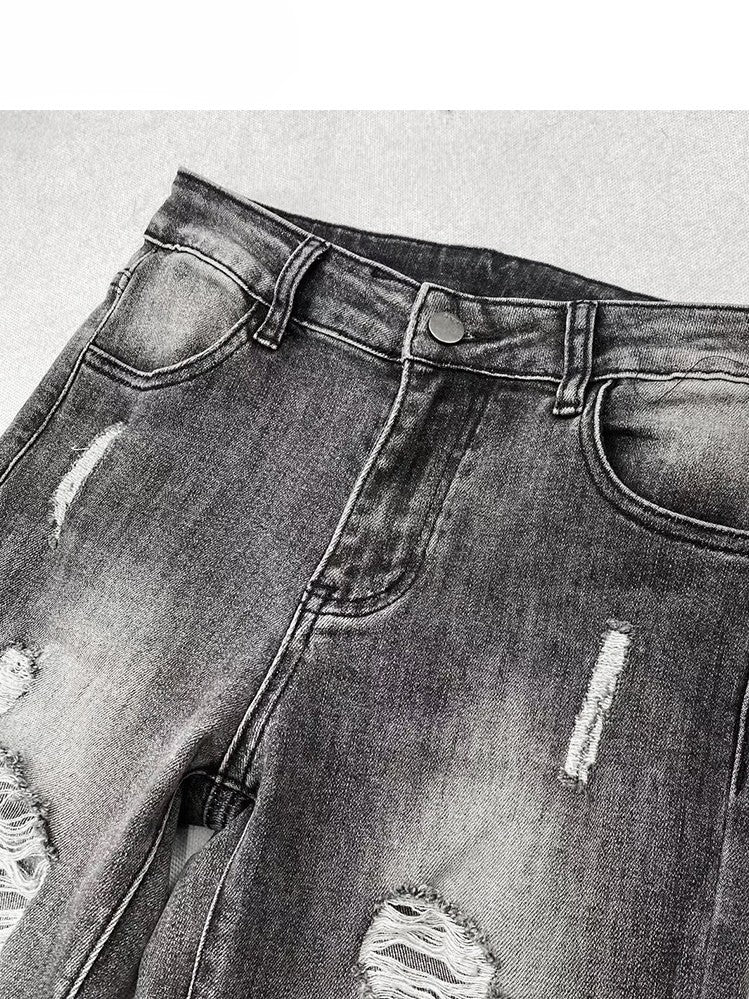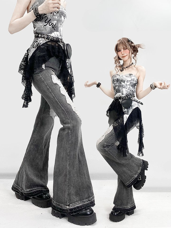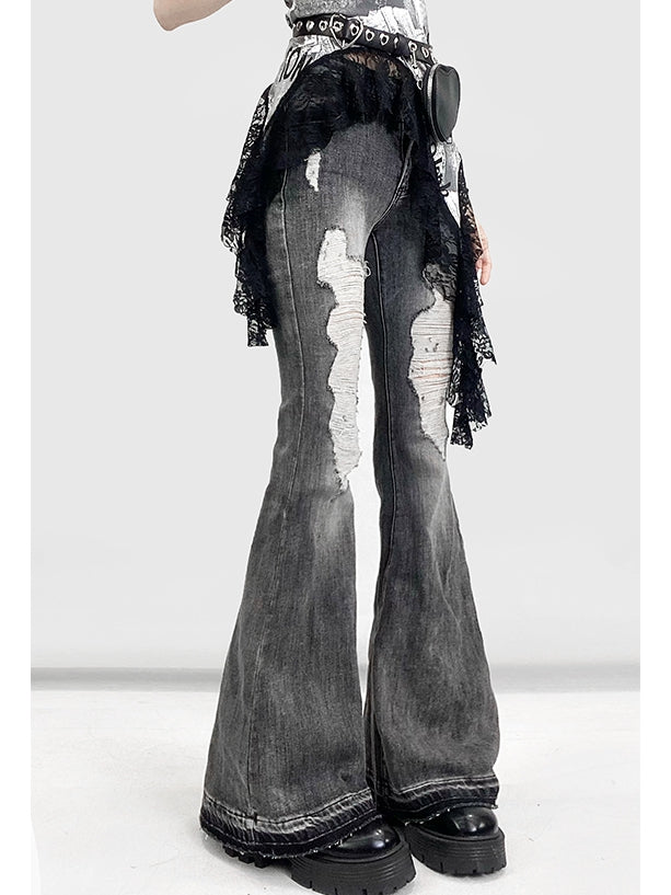Gray Bittersweet Flare Distressed Holes Details Silhouette Jeans