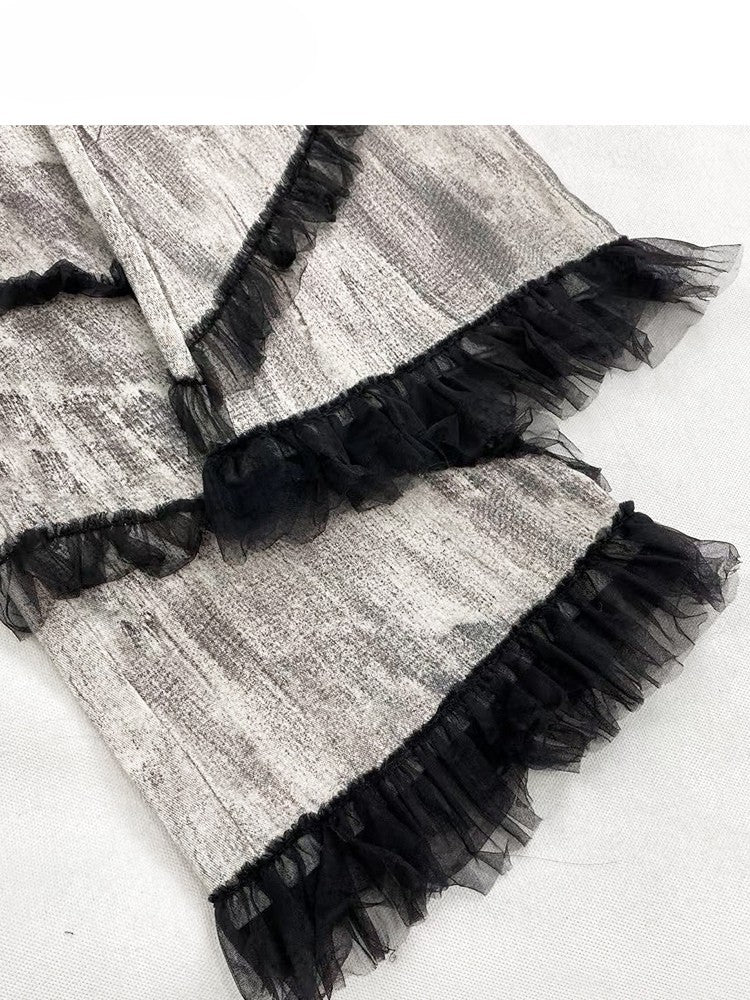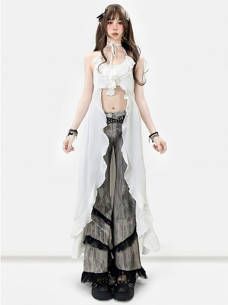 Smoky Gray Bittersweet Lace Trim Tie Dye Flare Silhouette Jeans