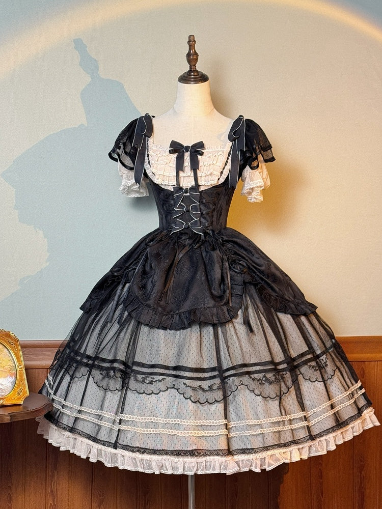 Black and White Old School Lolita Fashion Dress Bowknot Lolita JSK Set