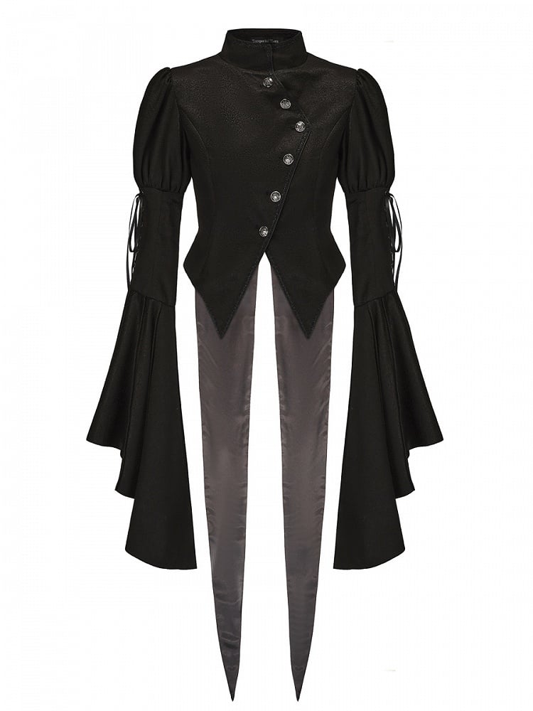 Ouji Lolita Black Stand Collar Bell Sleeves Top with Split-Tail
