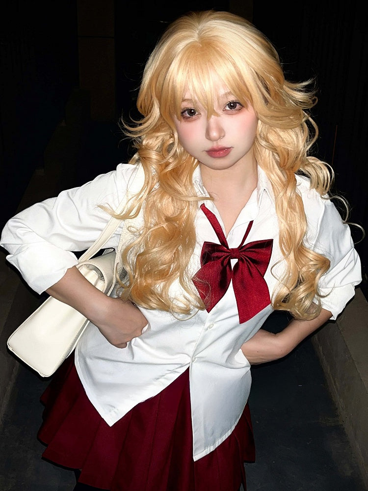 Blonde 70CM Length Wavy Wig With Air Bangs
