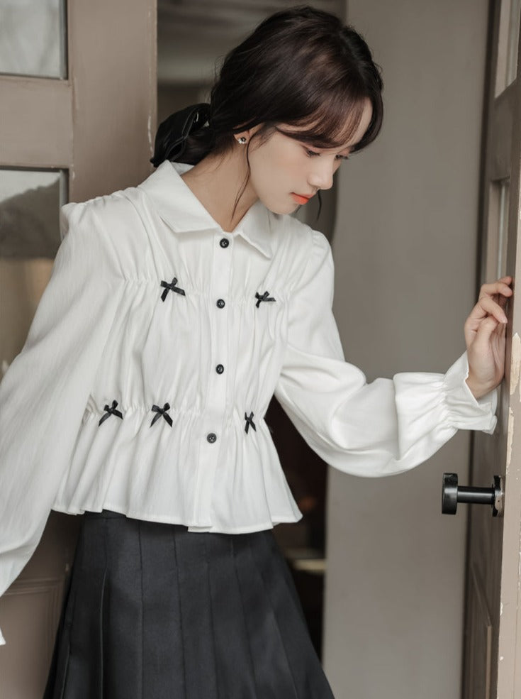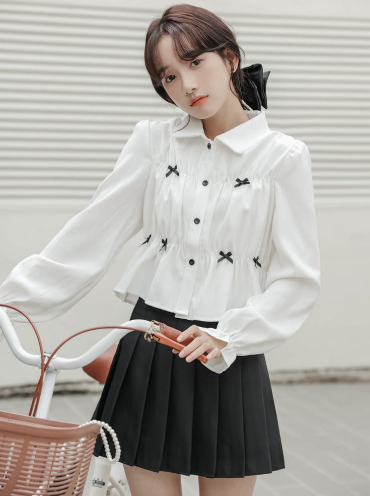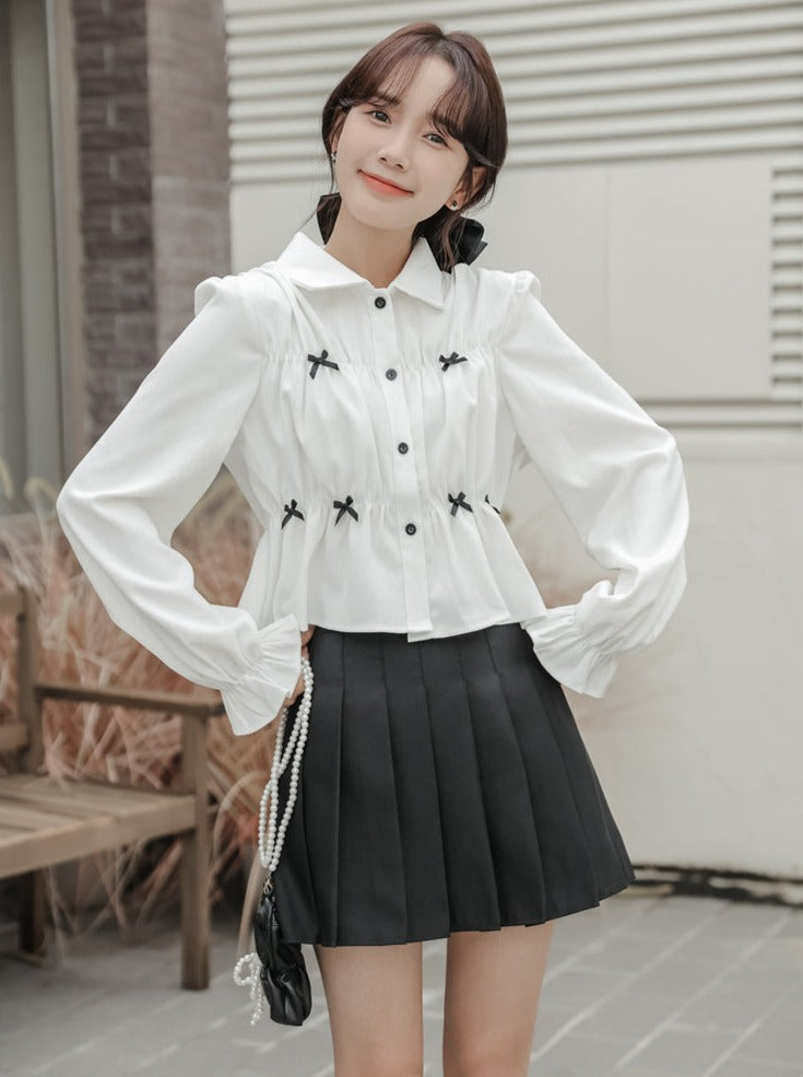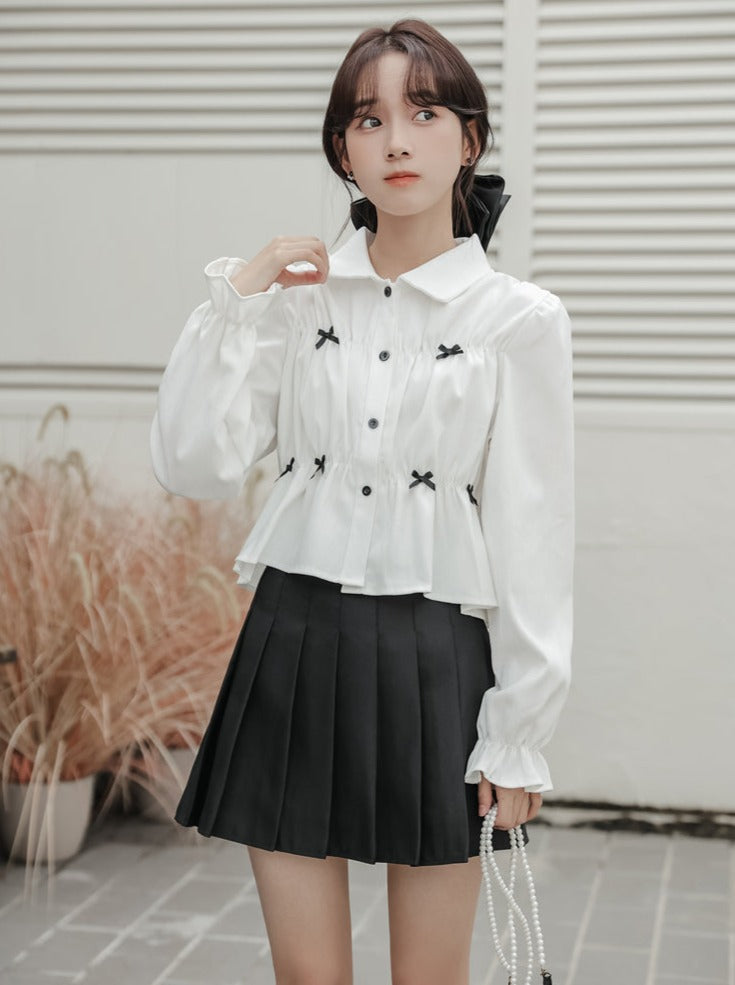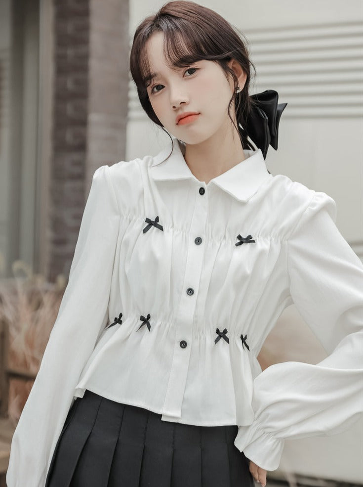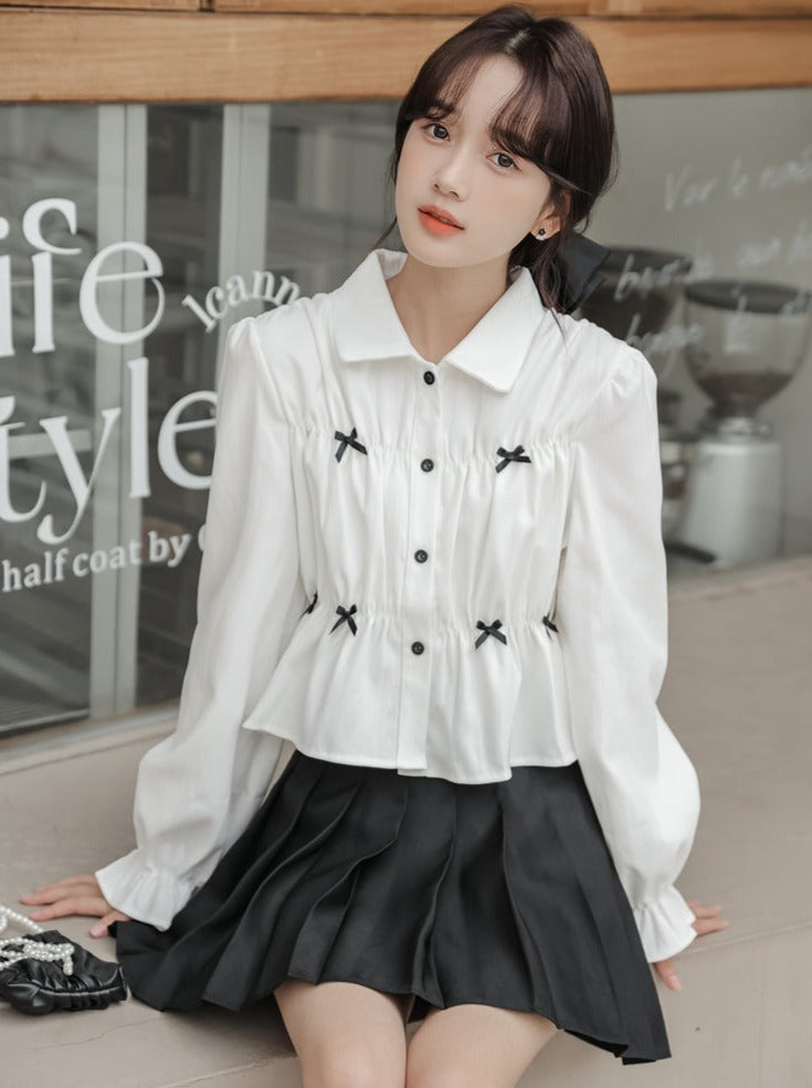 Get a cute and charming look with this Blouse Ribbon Short Shirring. Designed with a shirred waist and decorative ribbons, it adds an elegant touch to your outfit. Perfect for a dressed-up dinner or a day out with friends, this blouse offers versatility and style.