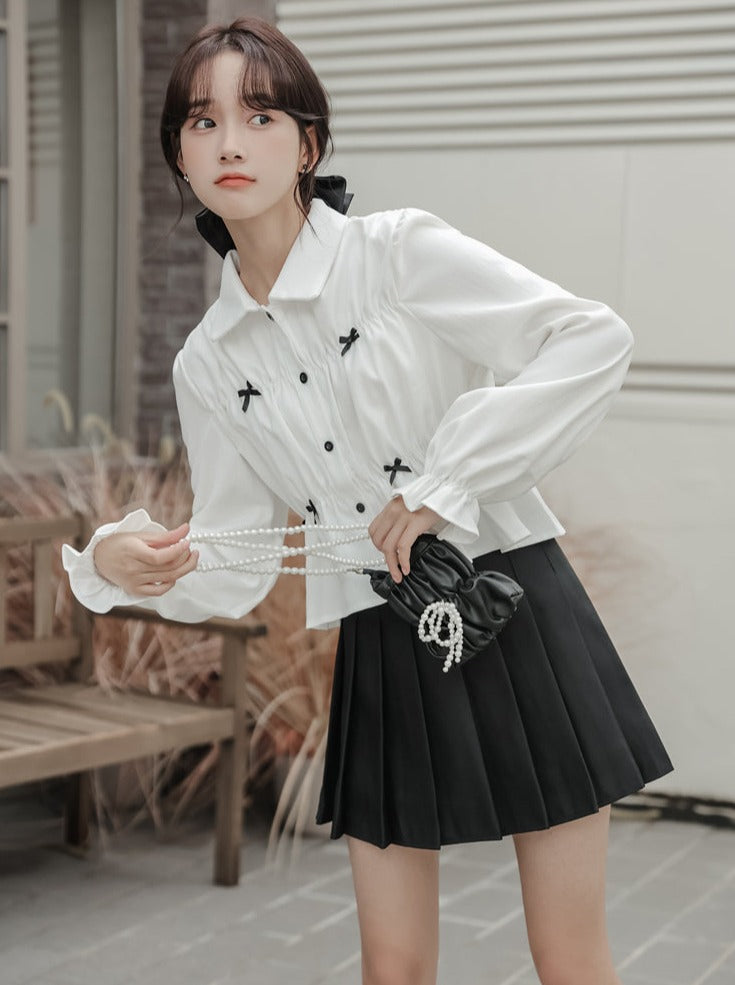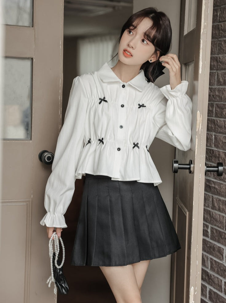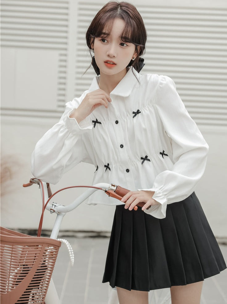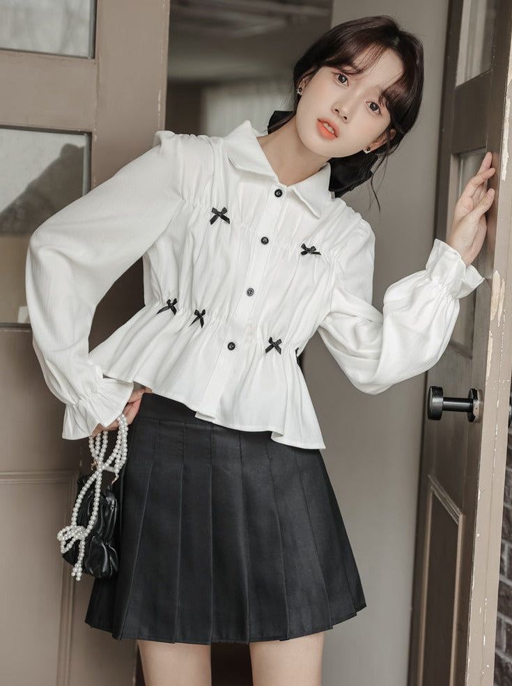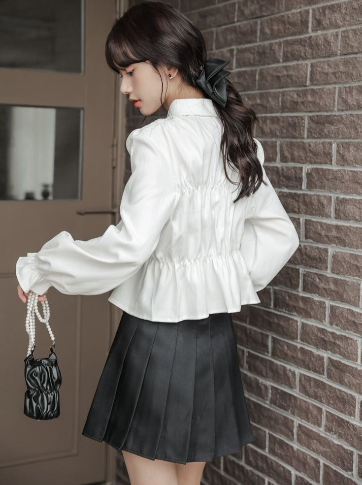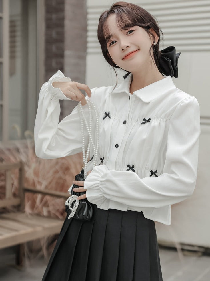 Get a cute and charming look with this Blouse Ribbon Short Shirring. Designed with a shirred waist and decorative ribbons, it adds an elegant touch to your outfit. Perfect for a dressed-up dinner or a day out with friends, this blouse offers versatility and style.