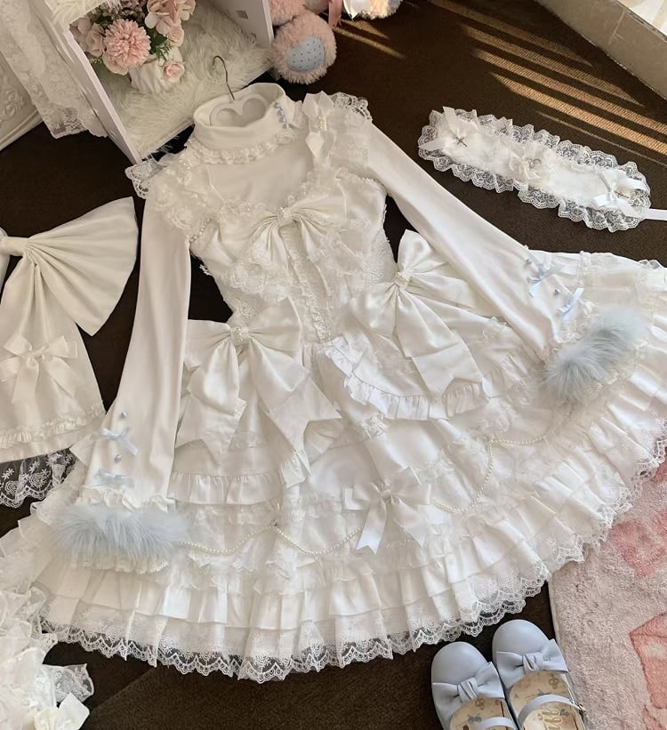 Black and White Old School Lolita Fashion Dress Bowknot Lolita JSK Set