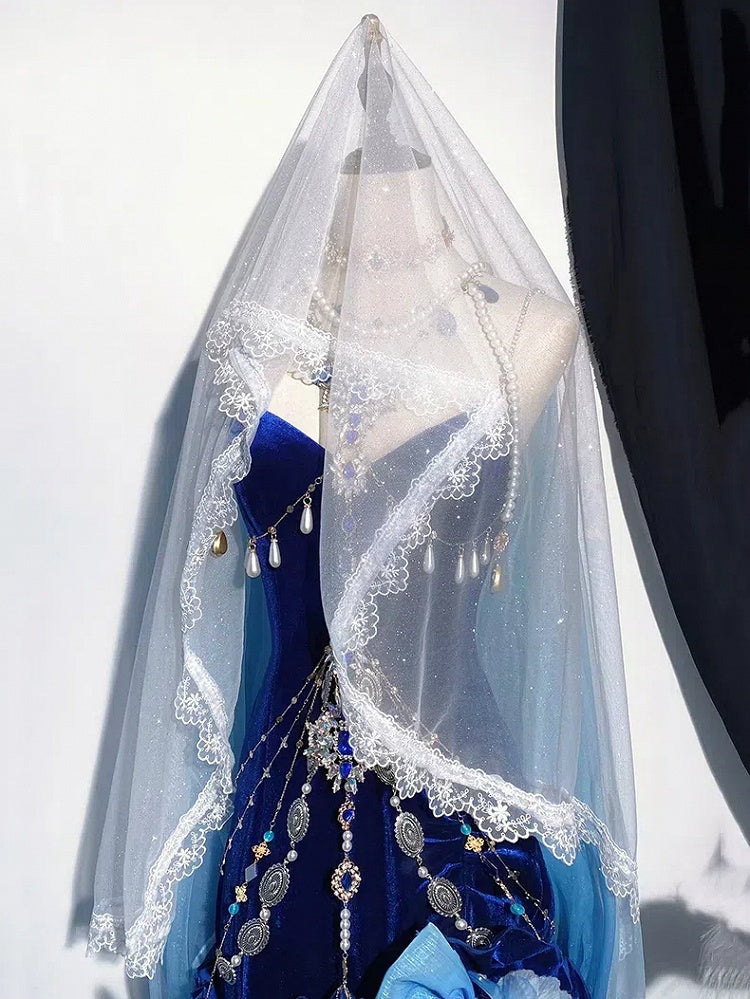 Elevate your style with the Blue/Red/Black Shimmering Veil. Experience a touch of elegance with our shimmering fabric, available in three charming colors to add a pop of personality to any outfit. Perfect for those who want to add a cute touch to their look.
