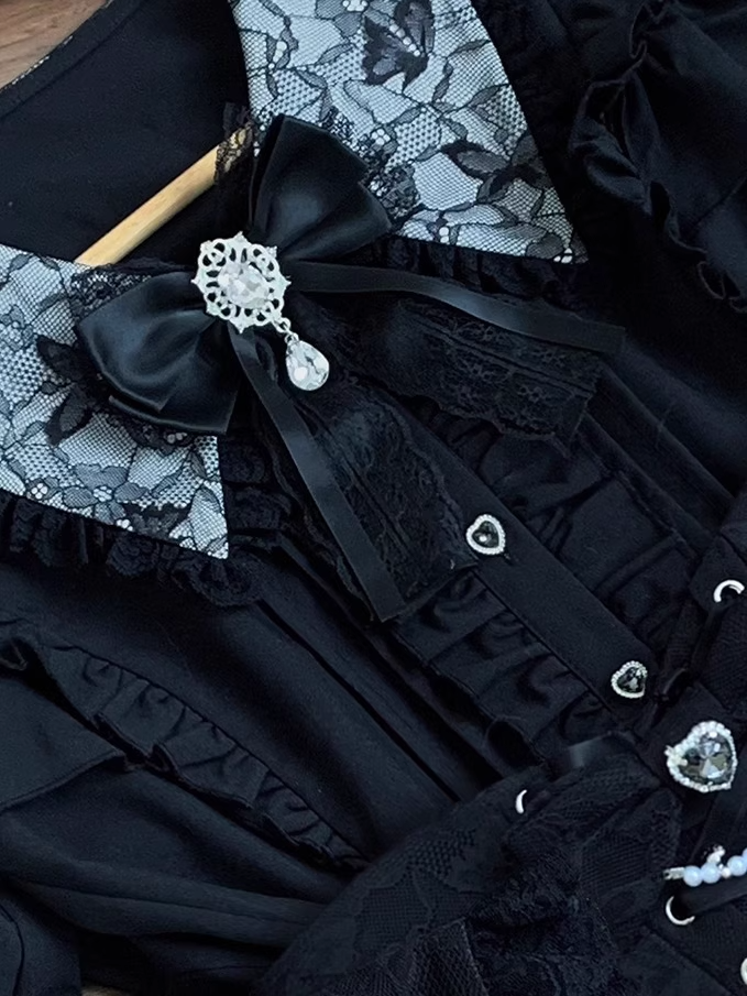 Black and White Old School Lolita Fashion Dress Bowknot Lolita JSK Set