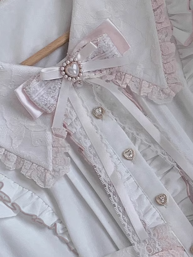 Pink and White Old School Lolita Fashion Dress Bowknot Detais Lolita JSK Set