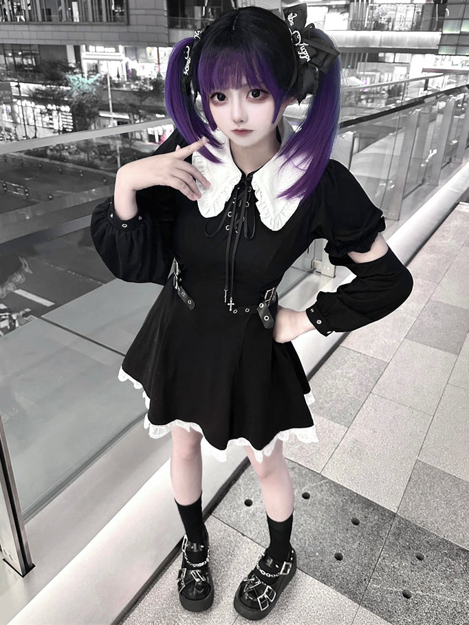 Black and White Old School Lolita Fashion Dress Bowknot Lolita JSK Set