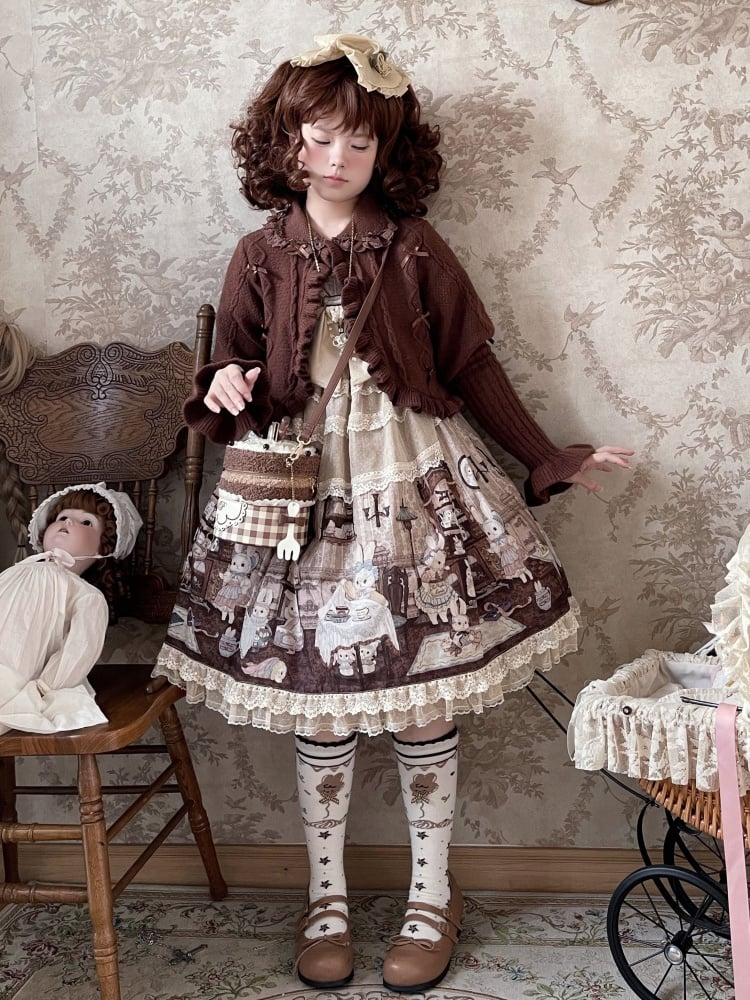 Black and White Old School Lolita Fashion Dress Bowknot Lolita JSK Set