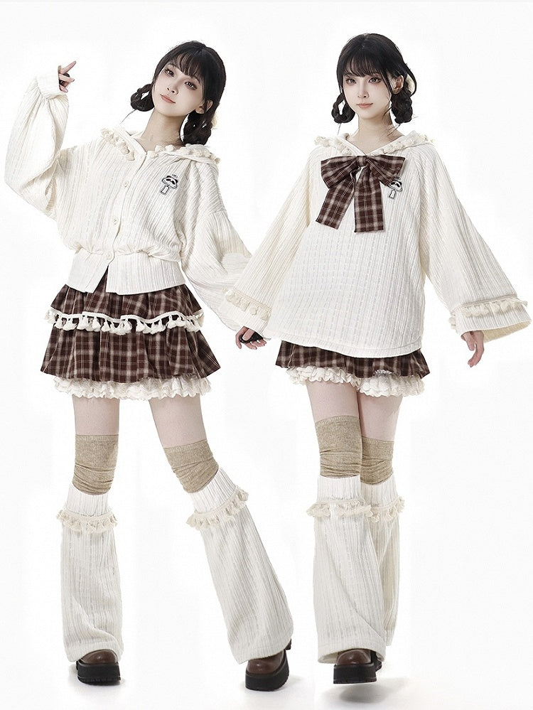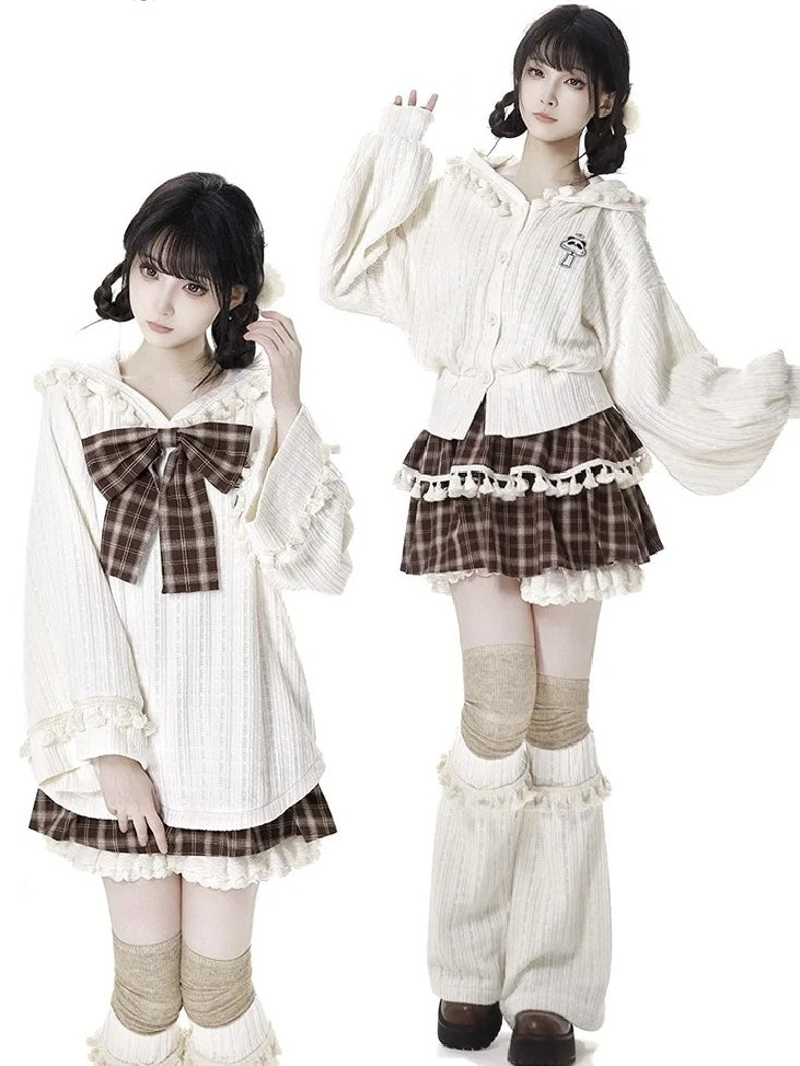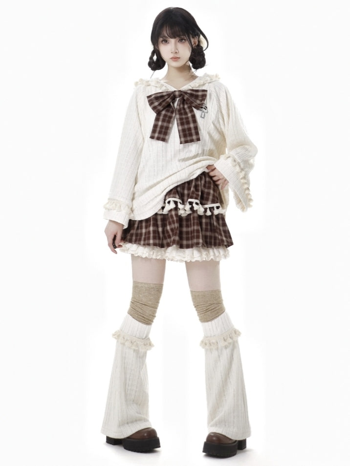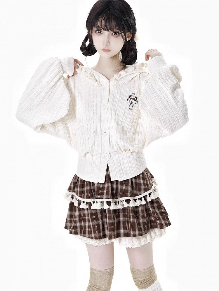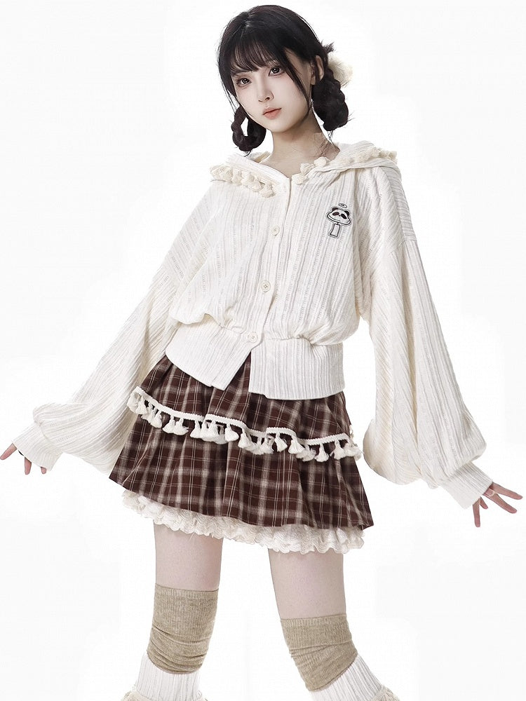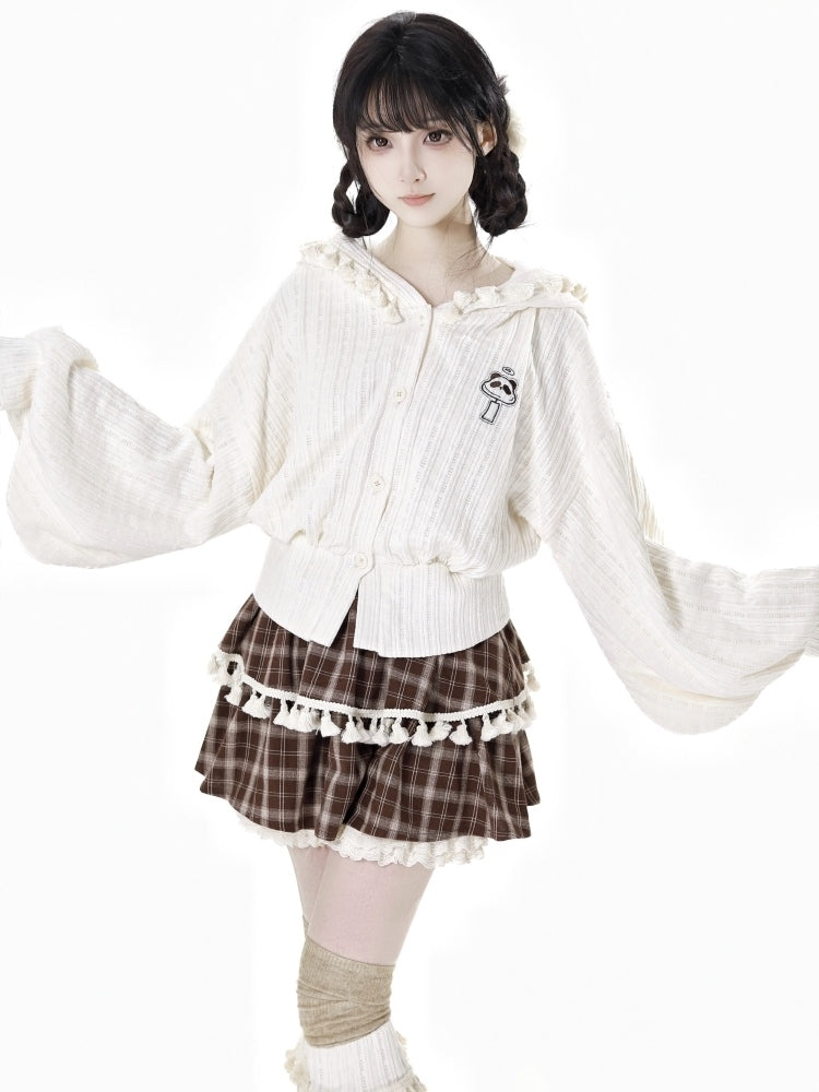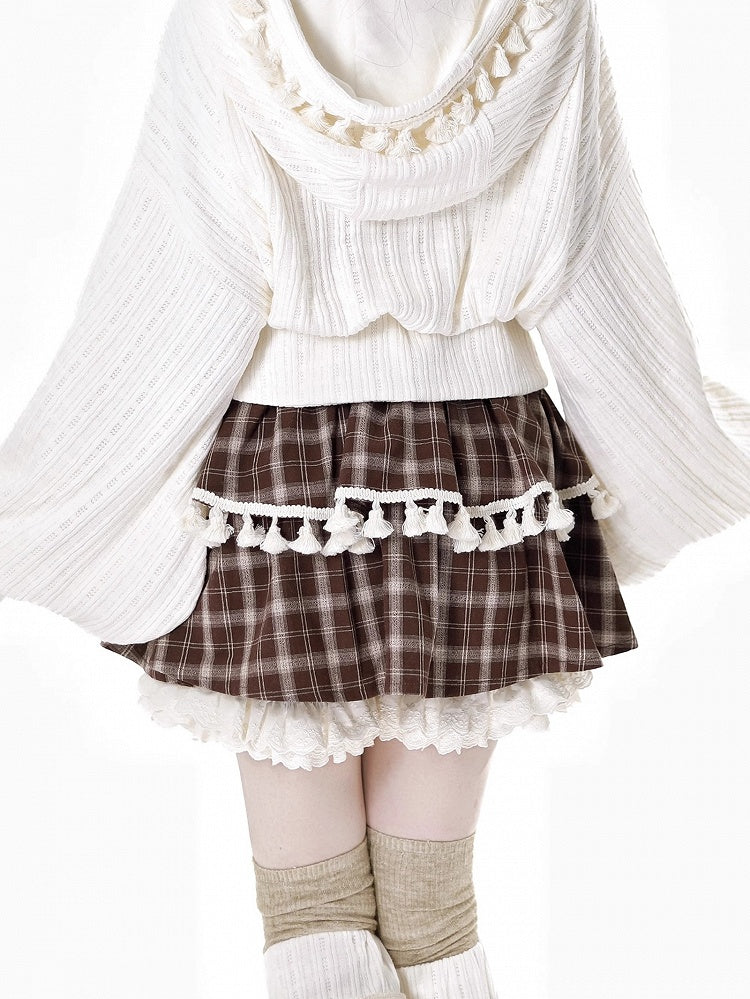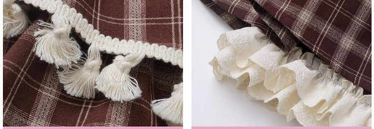 Brown Plaid Tiered Skort Ruffle Cuffs Fringe Trim