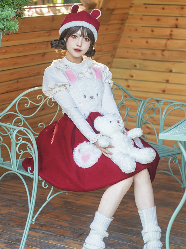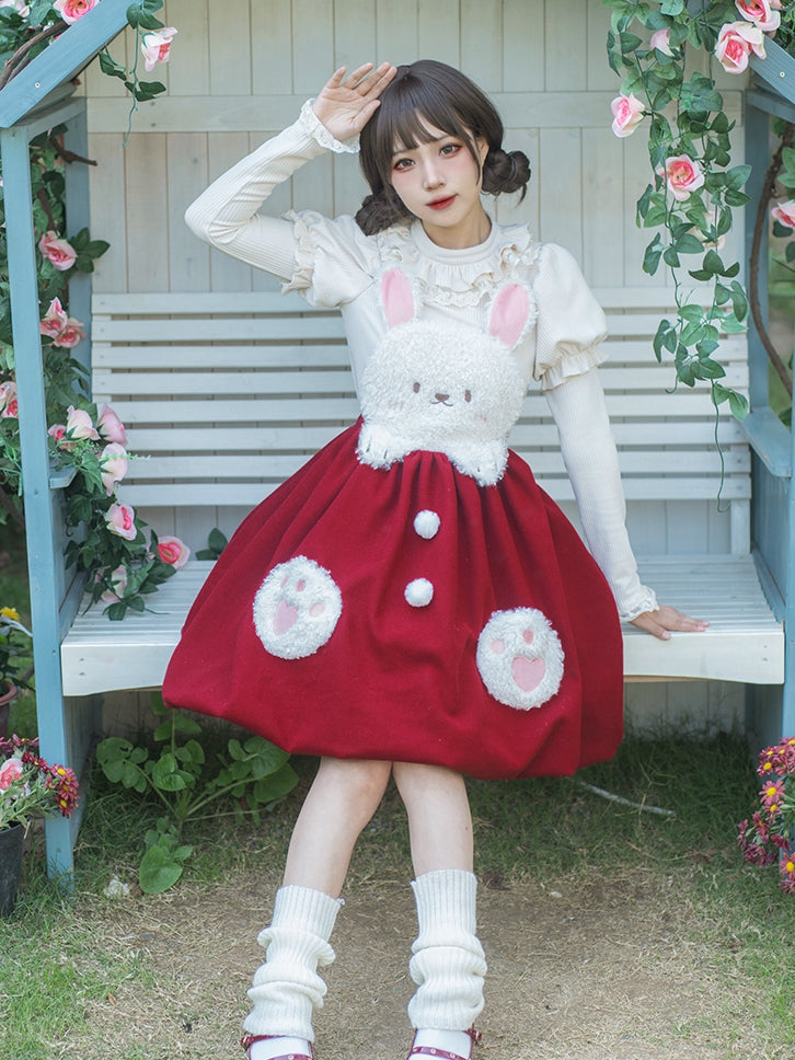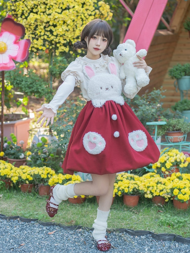 Bust S Trim White Clearance-Size Round Ruffle Neck Autumn Knitted for 90CM Souffle Top