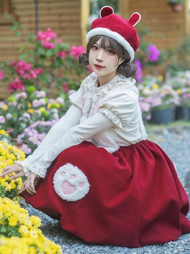 White and Pink Lolita Bonnet Choker