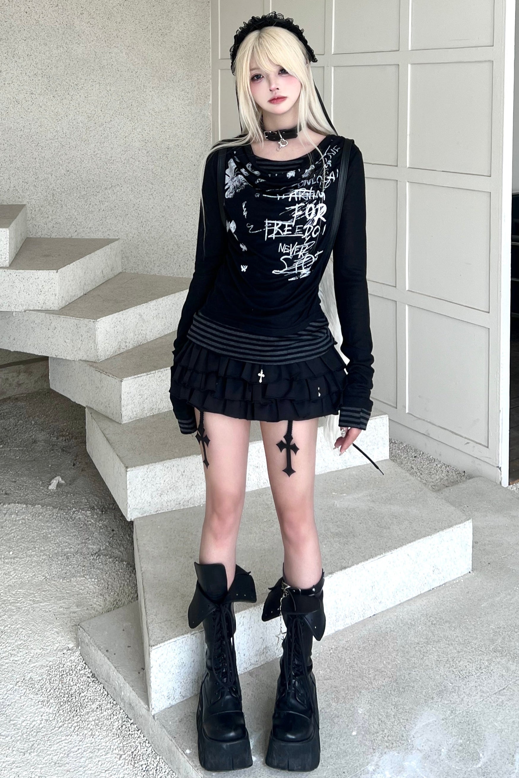 Black and White Old School Lolita Fashion Dress Bowknot Lolita JSK Set