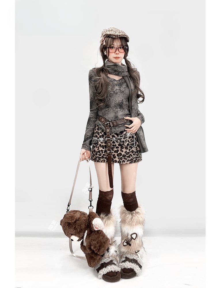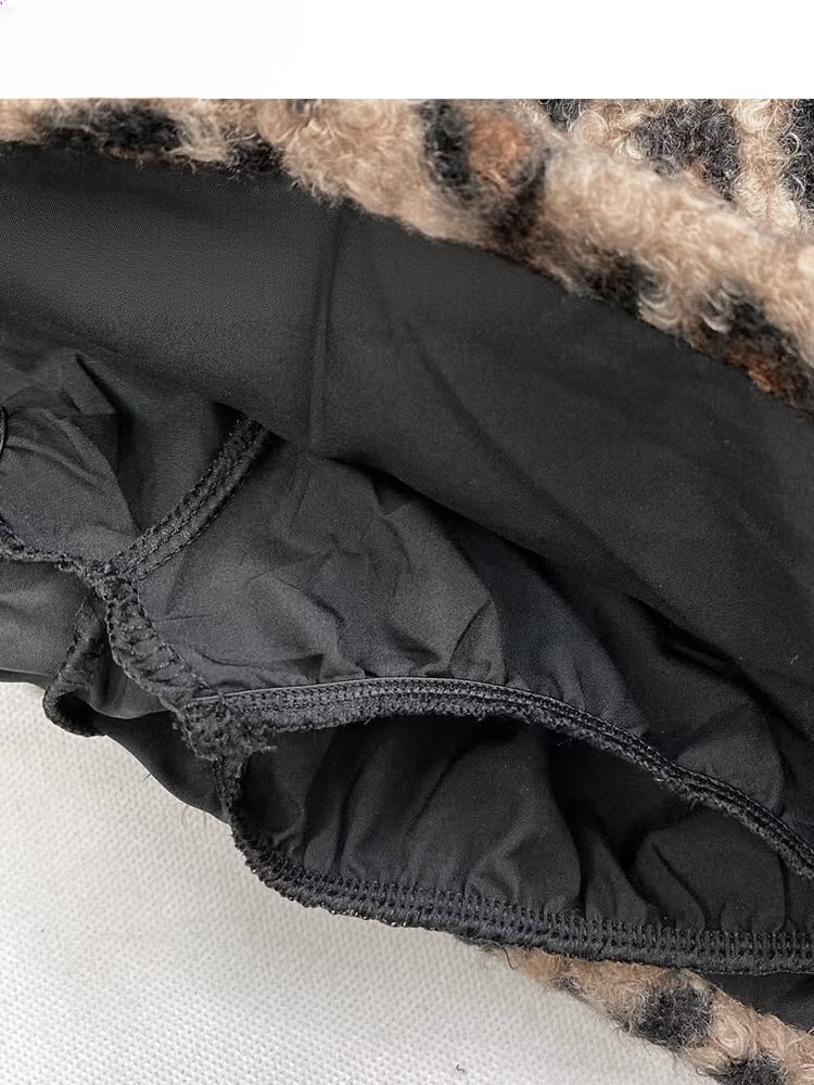 Add a touch of cuteness to your winter wardrobe with our Coffee Leopard Shaggy Lined Fleece Skirt. Made with cozy fleece and lined with soft shaggy material, this skirt will keep you warm and stylish. Perfect for pairing with boots and a sweater, it's a must-have for any winter outfit.