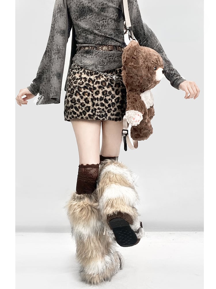 Coffee Leopard Shaggy Lined Fleece Skirt