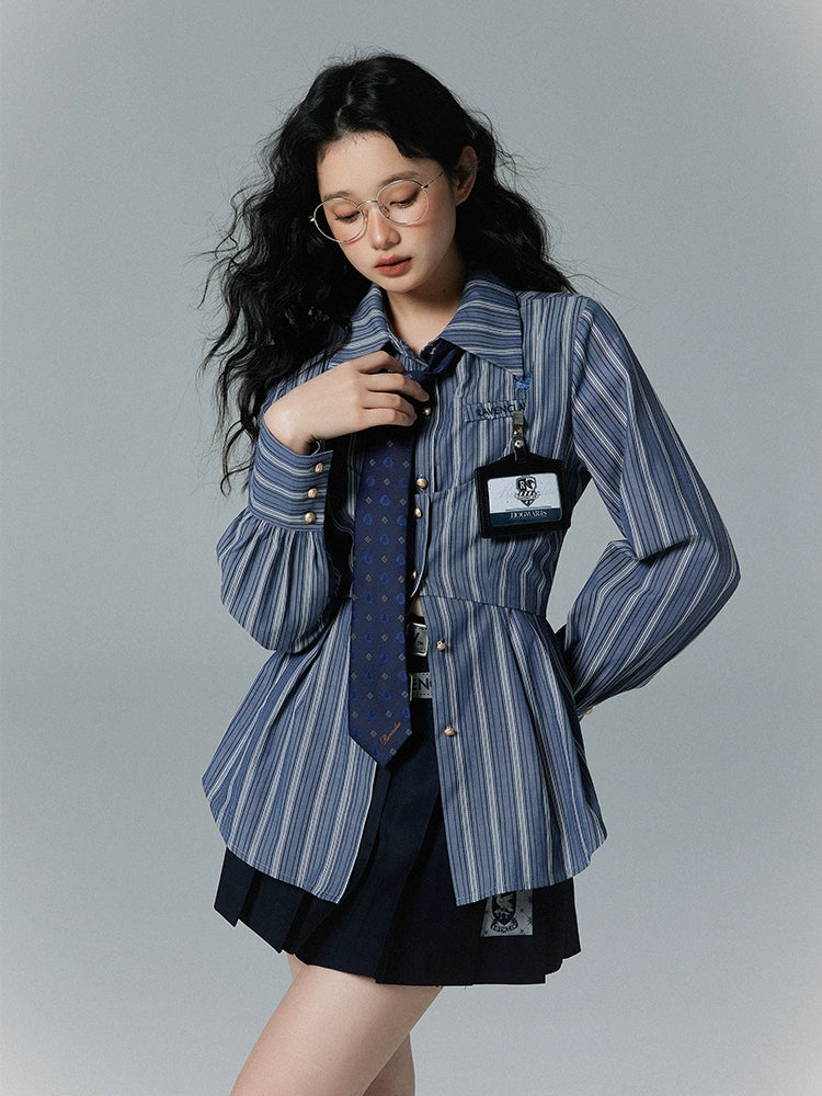 Make a statement with this adorable Collar Striped Faux Two-piece Polo Shirt. Featuring a unique design and comfortable fit, this shirt is perfect for any stylish occasion. With its eye-catching stripes and sleek faux two-piece look, you'll be turning heads wherever you go. Stay fashionable and cute with this must-have addition to your wardrobe.