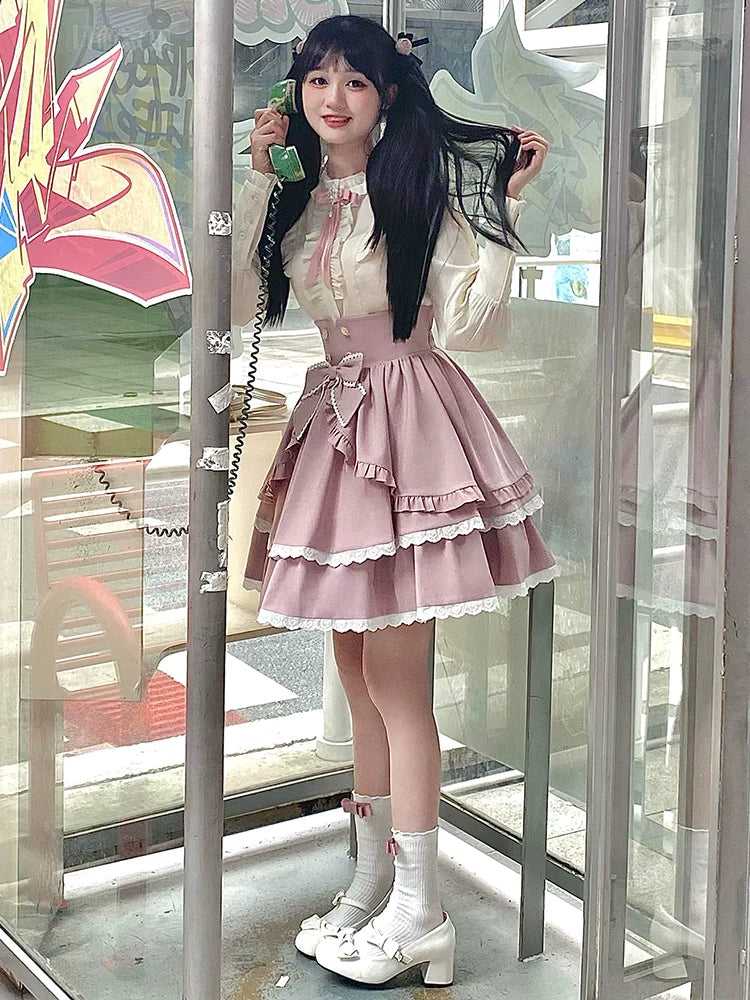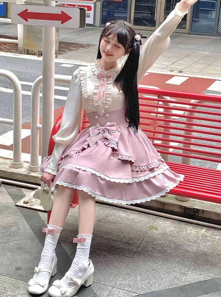 Pink and White Old School Lolita Fashion Dress Bowknot Detais Lolita JSK Set