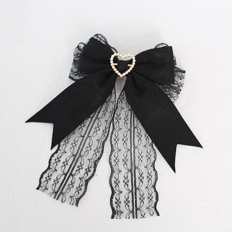 Decoration Black Jirai Hairclip With Kei Large Heart Lace Bowknot