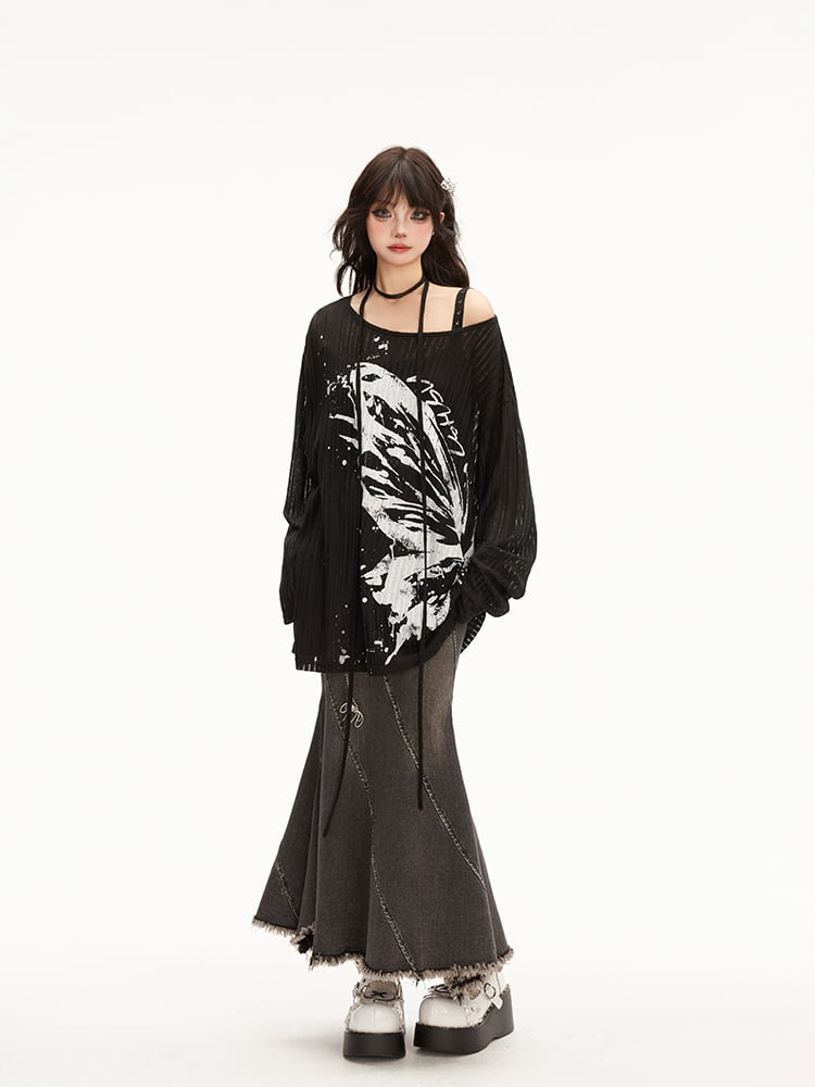 ● Distressed Design / Frayed Hem / Mermaid Skirt