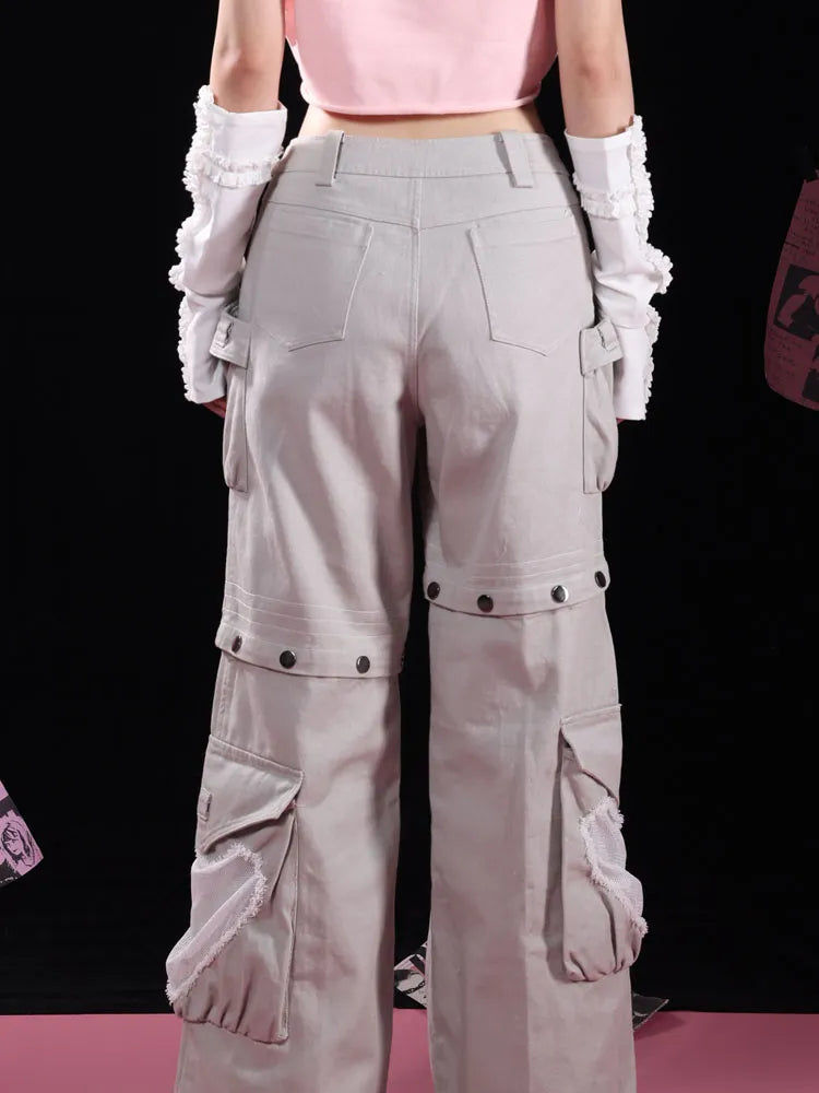 Detachable Jeans Studs Cargo Gray Star-shaped Pockets