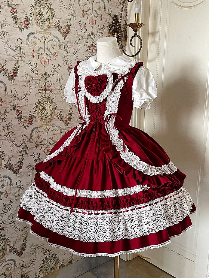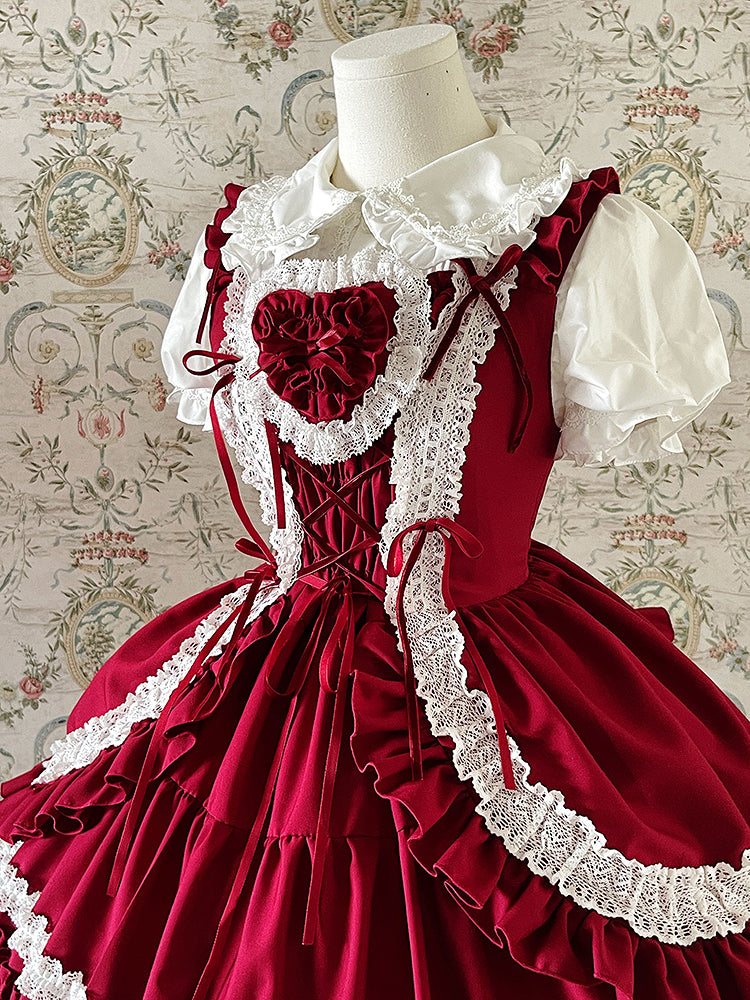 Red Old School Lolita Dress Detachable Padded Heart Bodice Jumper Skirt