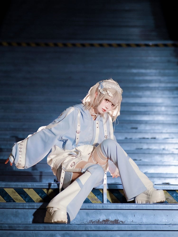 Cyberpunk Shorts in Light Blue: Tenshi Kaiwai Style with Heart Buckle Straps & Metallic Details