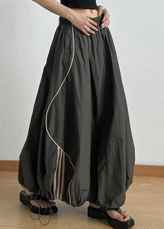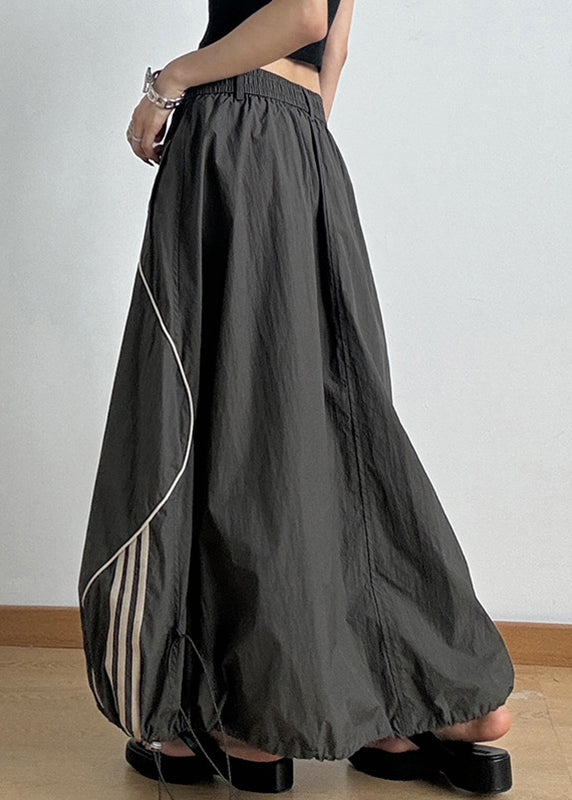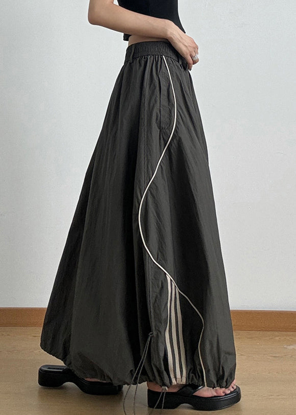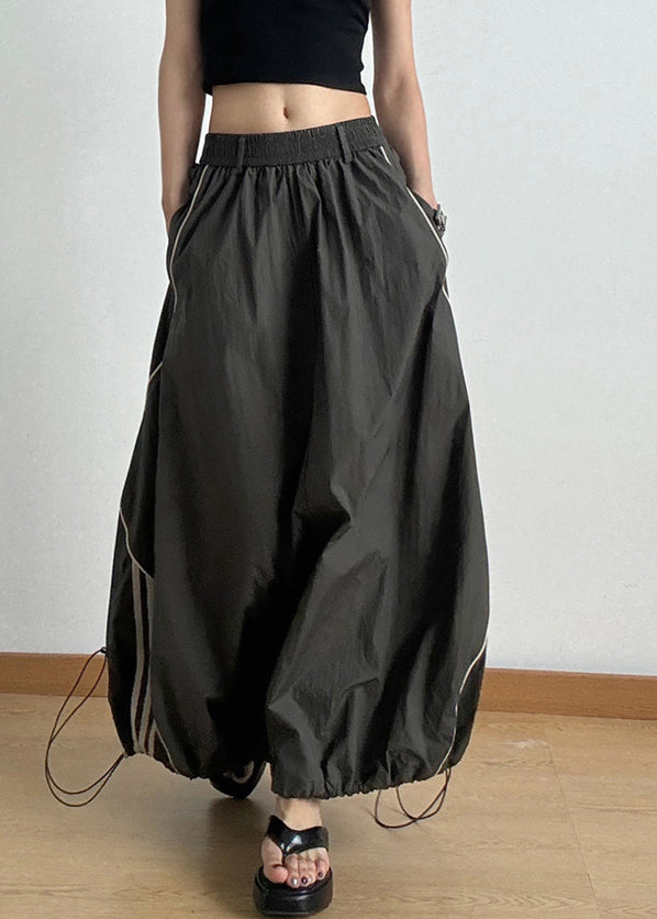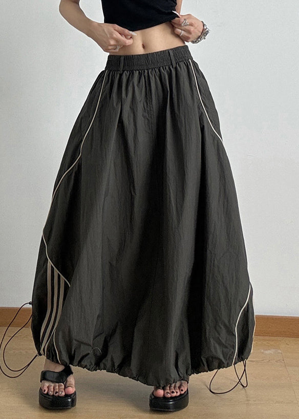 Casual Army Green Elastic Waist Drawstring A Line Skirts Summer