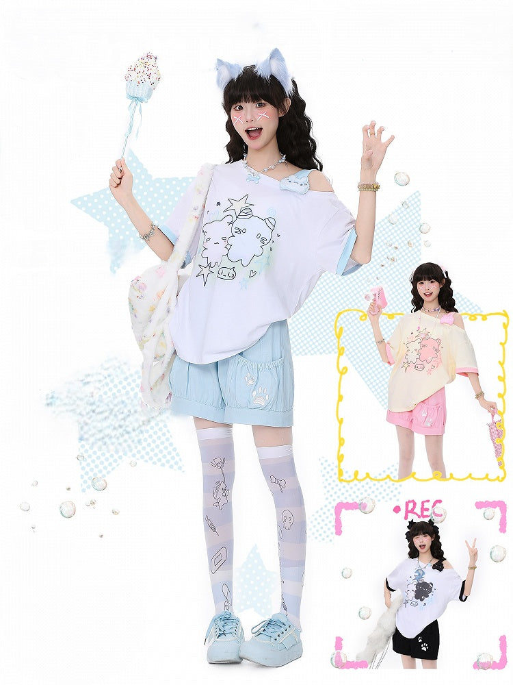 Embroidered Dog Paw Shorts Blue/Pink/Black