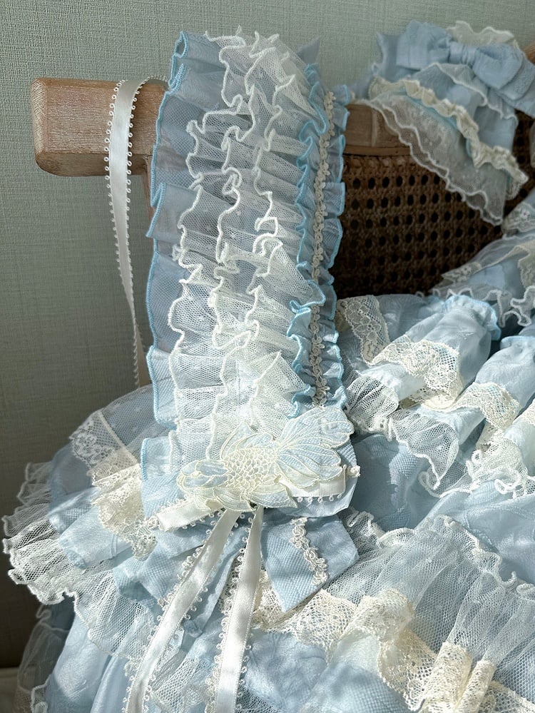Blue and White Old School Lolita Fashion Dress Bowknot Detais JSK Set