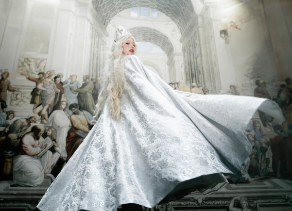 Embroidery Details and Cross Decorated White and Silver Nun Lolita Cloak