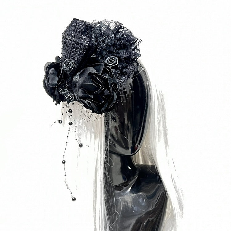 Floral Black Coffin Lolita Gothic Headpiece and Embellished Cross