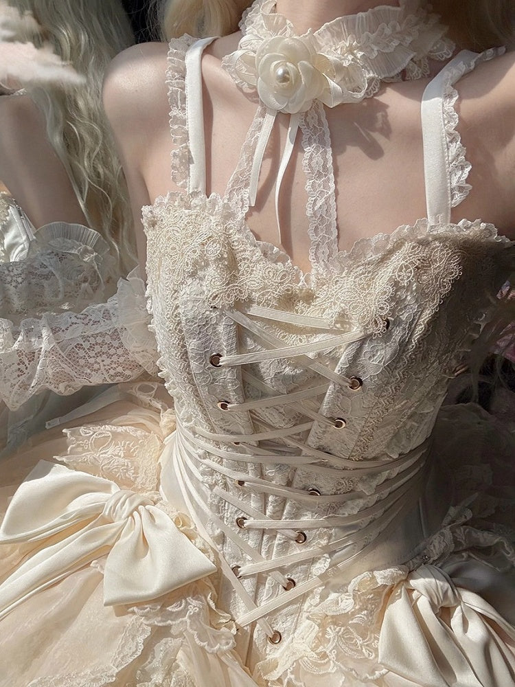 Black and White Old School Lolita Fashion Dress Bowknot Lolita JSK Set