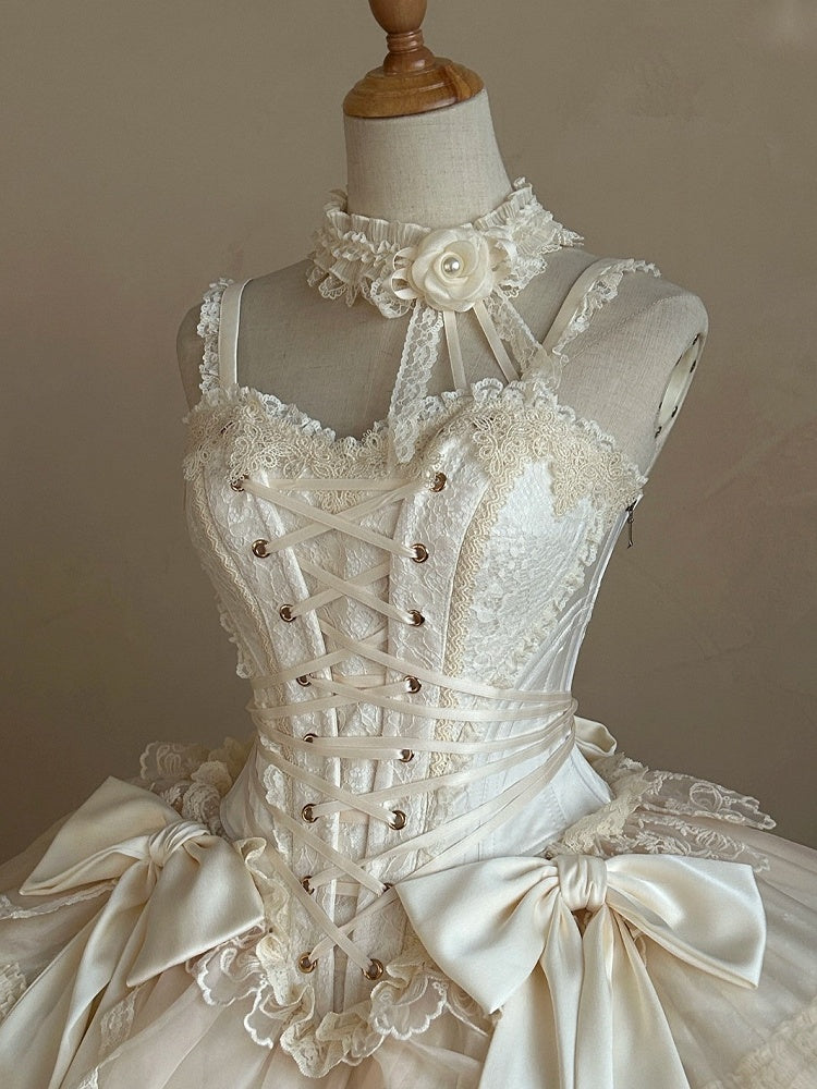 Pink and White Old School Lolita Fashion Dress Bowknot Detais Lolita JSK Set
