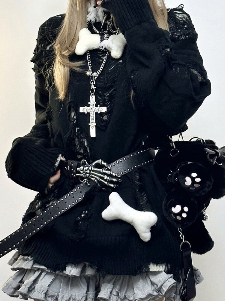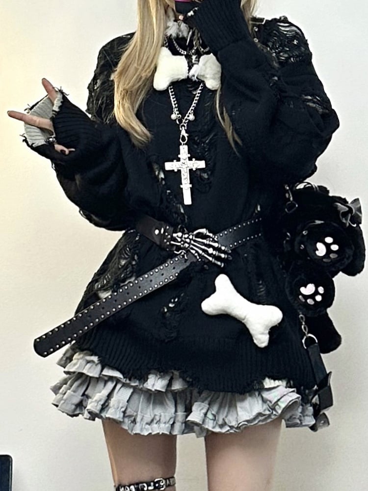 Double-Sided Black Sweater: Distressed Detail for Fall/Winter