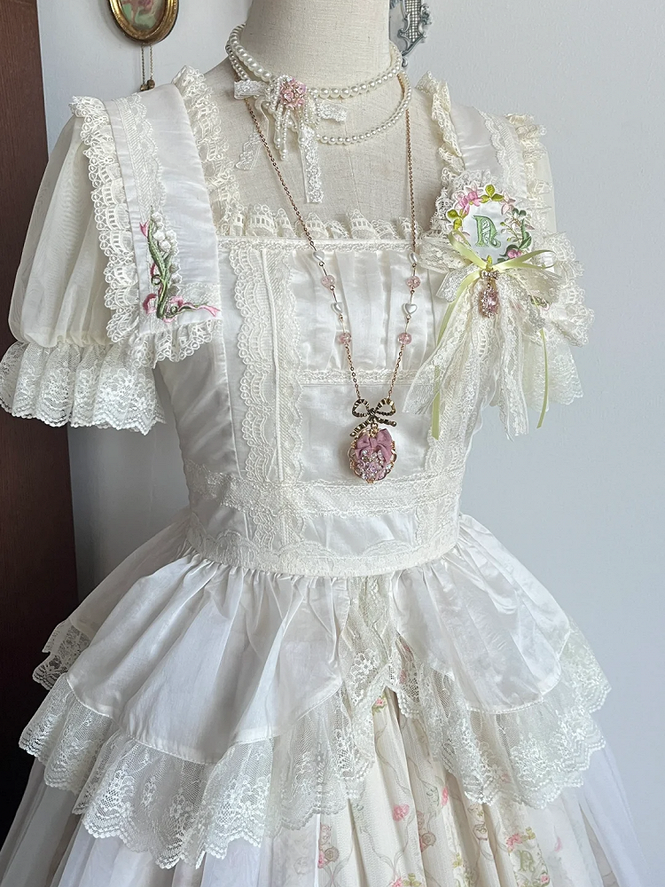 Pink and White Old School Lolita Fashion Dress Bowknot Detais Lolita JSK Set