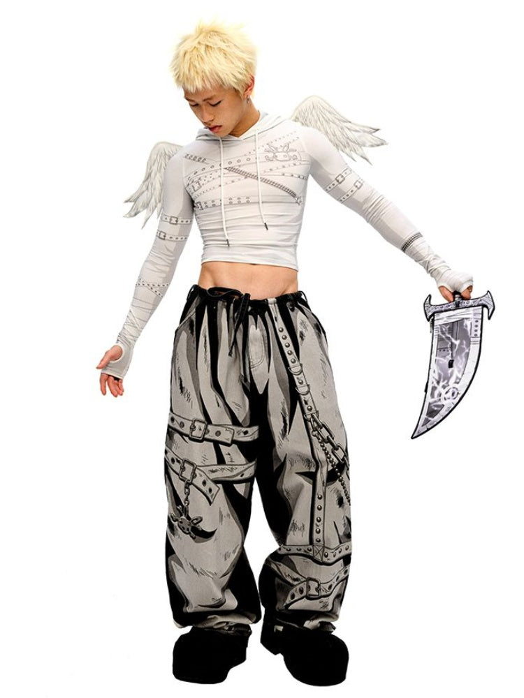 Gray Cartoon Lightning Knife-Shaped Crossbody