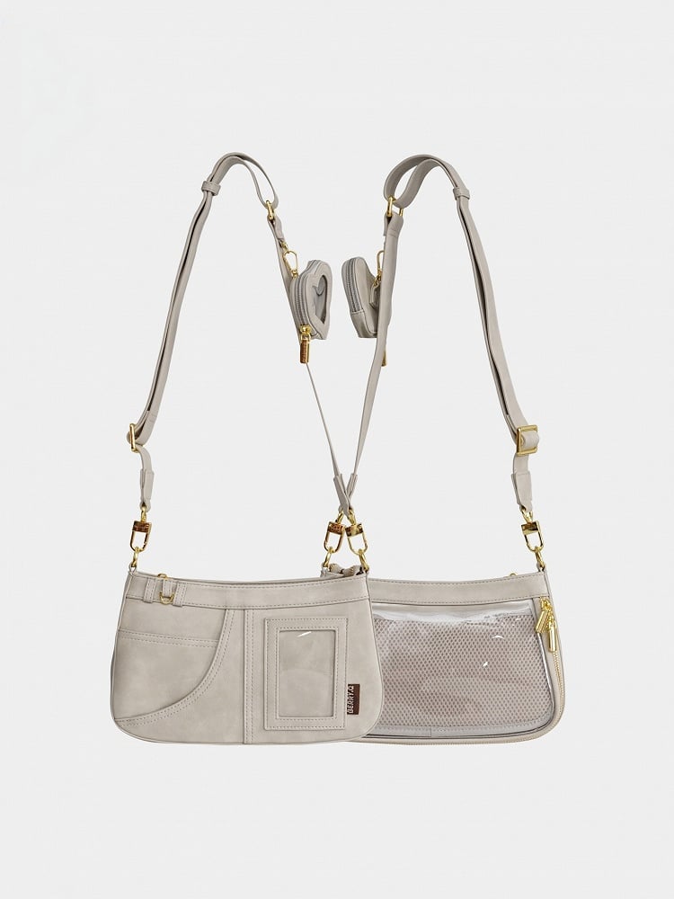 This charming gray wasteland punk ita bag comes with a sweet sweetheart charm. Keep your belongings organized while flaunting your unique style in a cute and adorable way. Perfect accessory for any outfit.
