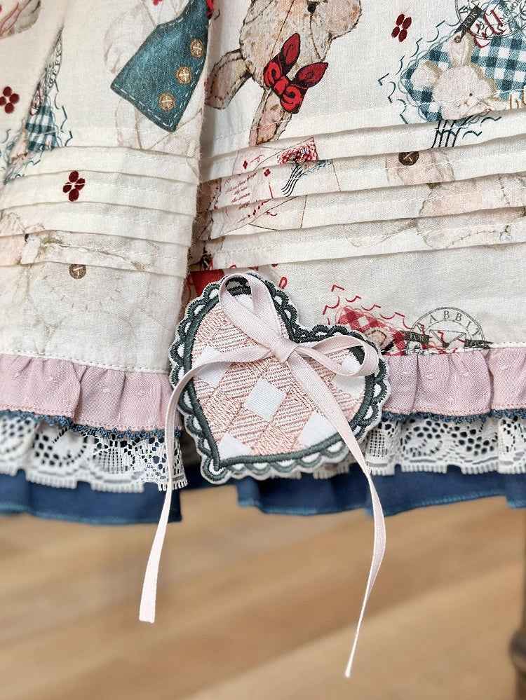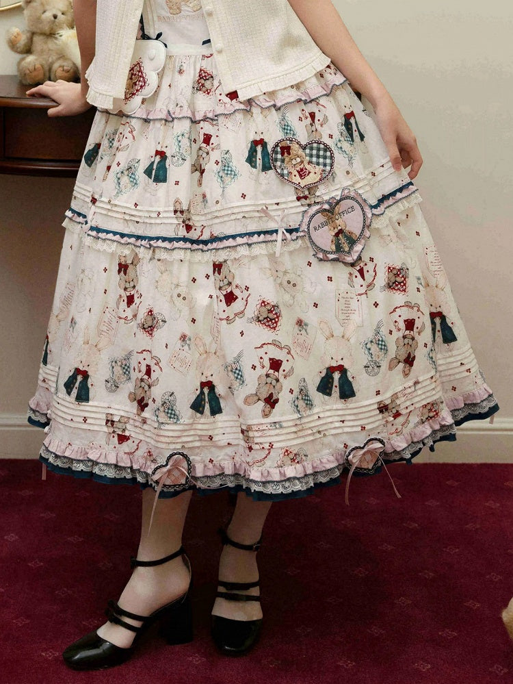 Blue and White Old School Lolita Fashion Dress Bowknot Detais JSK Set