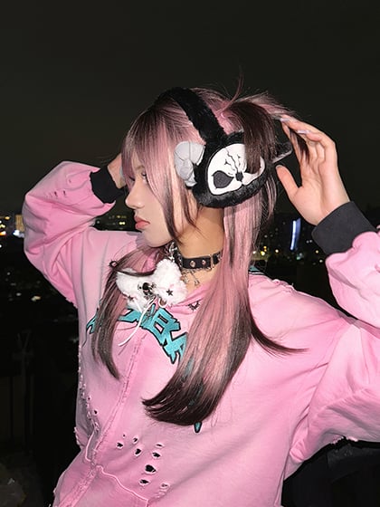 Clearance-Black and White Grim Reaper Gothic Plush Ear Muffs