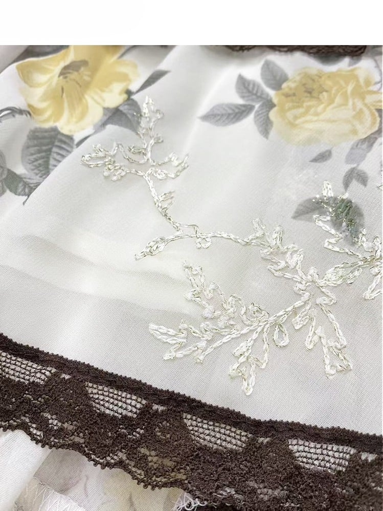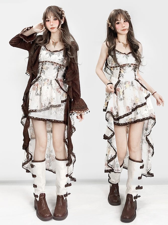 High-low Brown Sleeves Cami Cardigan Bell White Skirt With Dress Holiday Floral