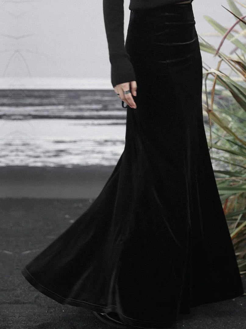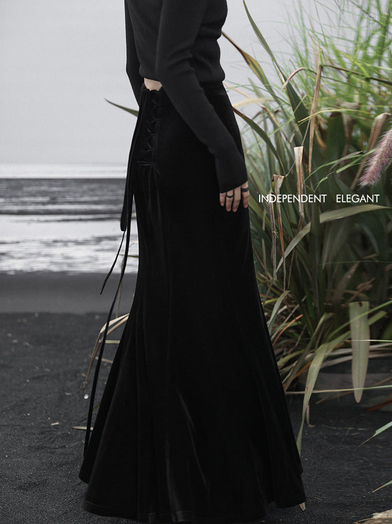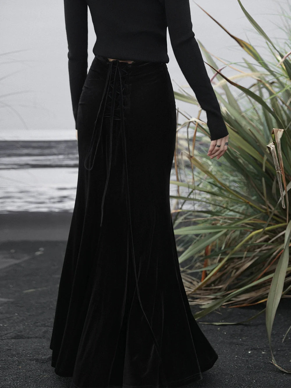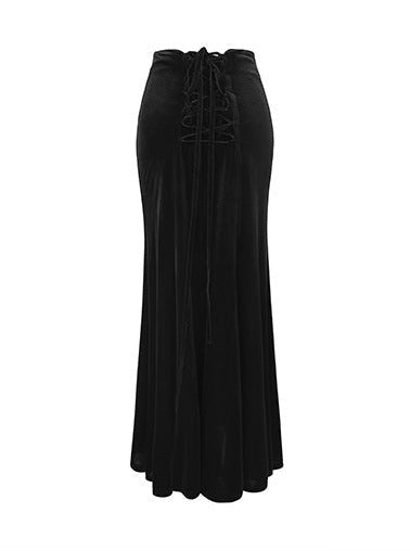 High Mermaid Velvet Black Waist Skirt Retro Back Long Up Lace