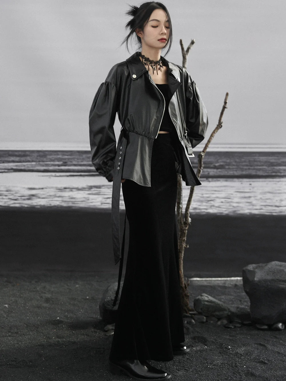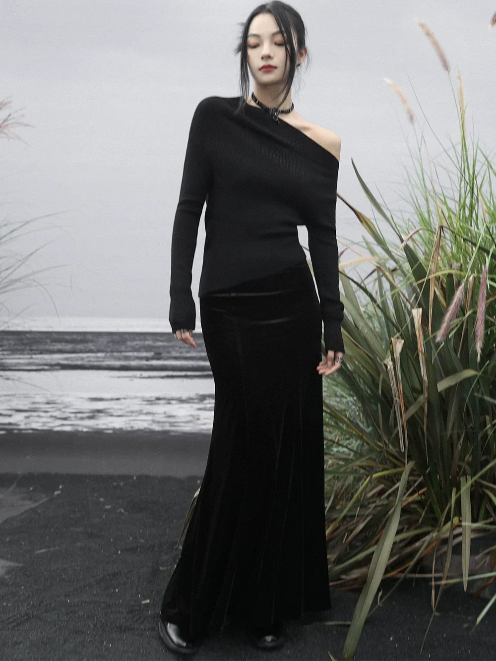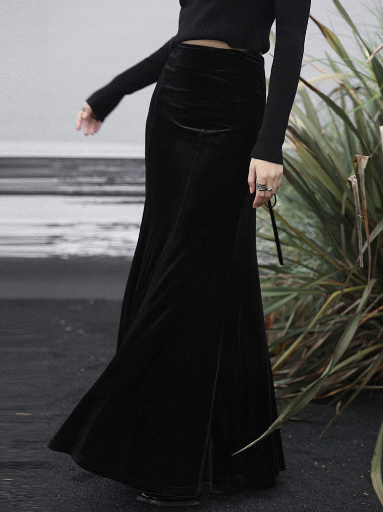 High Mermaid Velvet Black Waist Skirt Retro Back Long Up Lace