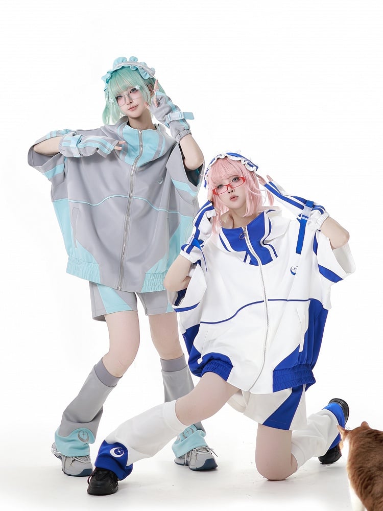 Green and Gray Colorblock Design Jirai Kei Sports Shorts