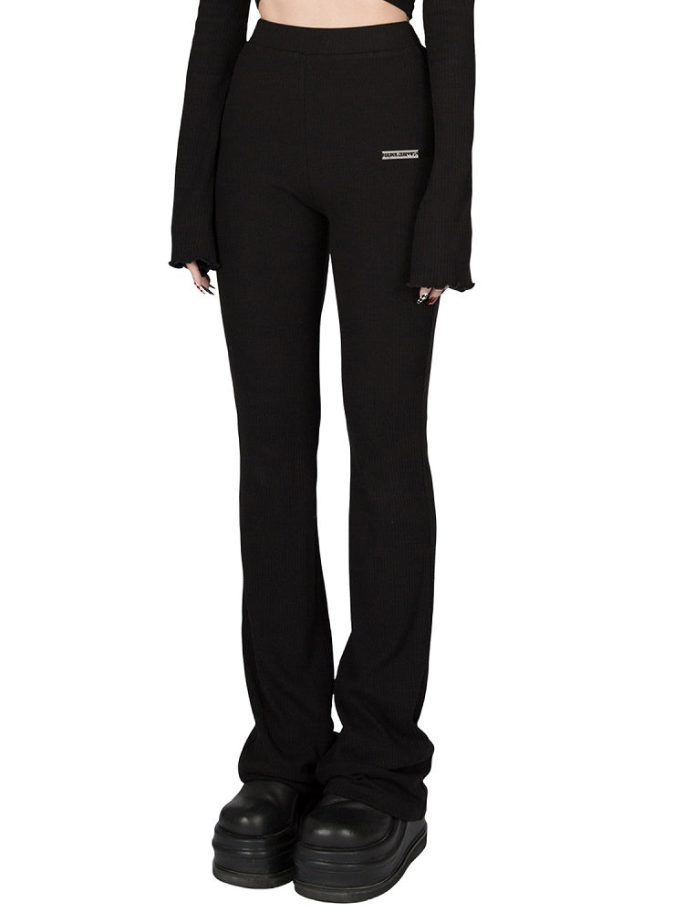 Knit Pants Stretchy High-Waisted - Flared Figure-Flattering Black
